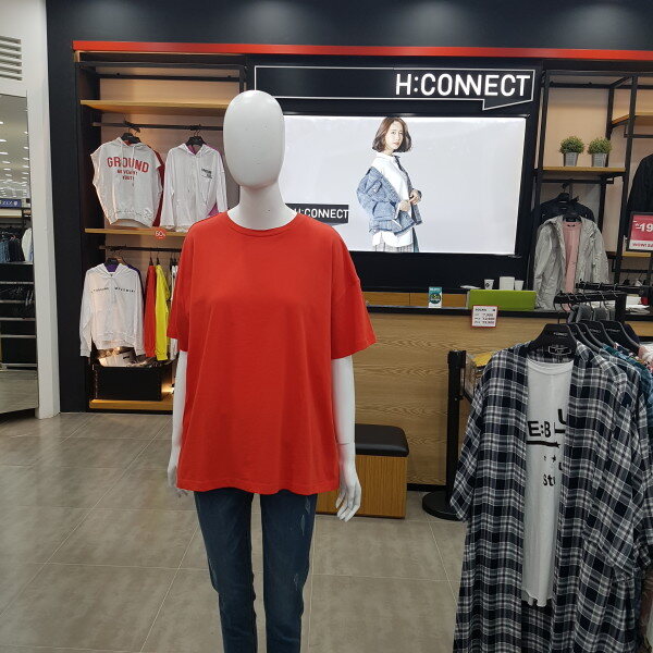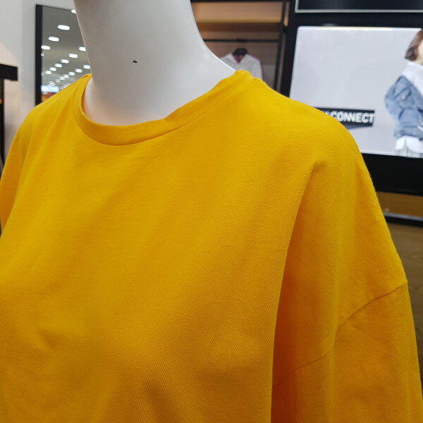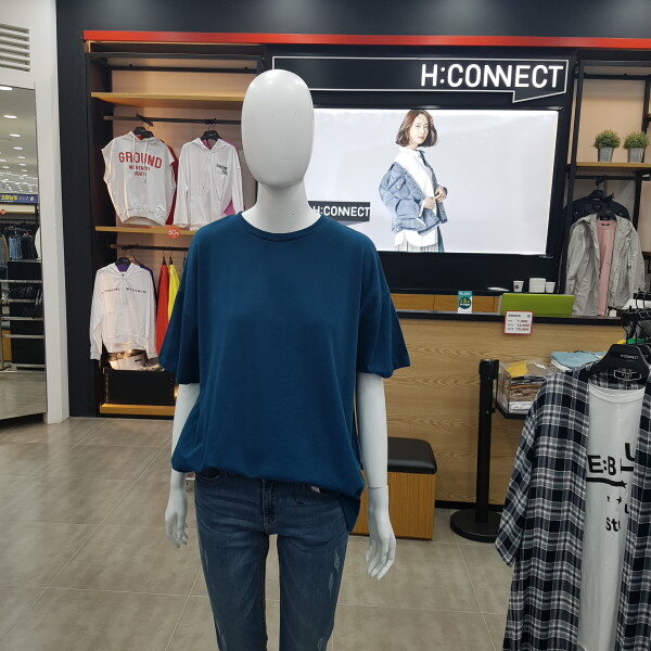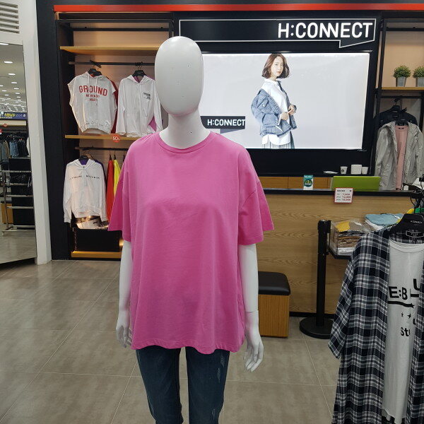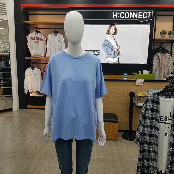 여유있는 핏으로 데님 스커트 팬츠에 모두 어울리는 라운드넥 티셔츠입니다