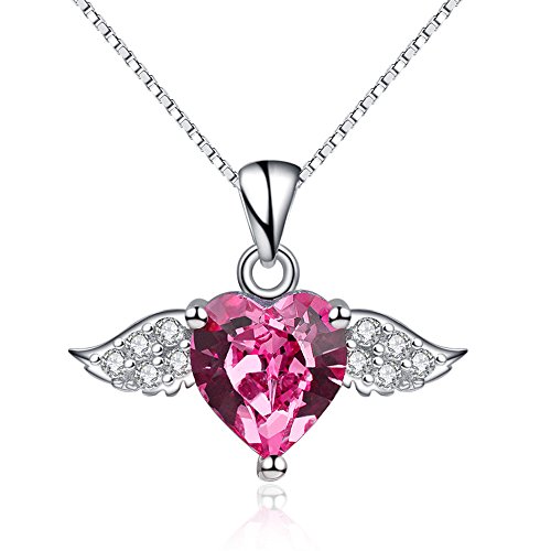 -. Title : S925 Sterling Silver Angel Wing Love Heart Pendant Necklace for Women, 16''