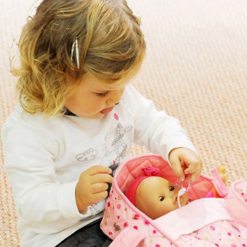 - Feature : Lightweight carry bed in a sweet nursery print fits dolls up to 12 inches tall (dolls sold separately) / Sewn-in handles make the bed easy to carry / Includes a matching pillow / Coordinates with other nursery accessories in the Mon Premier Collection (each sold separately) / Surface clean
