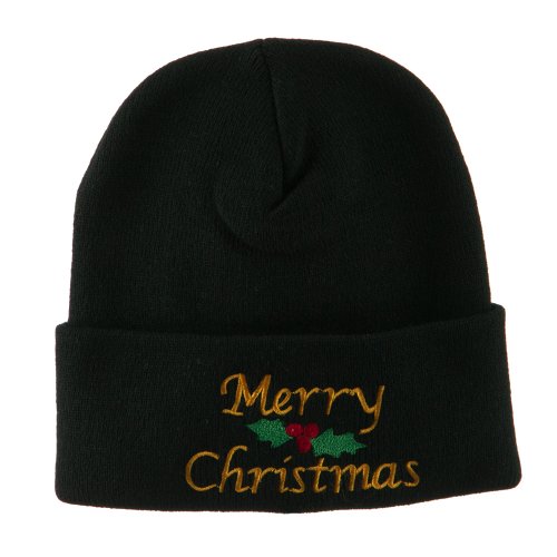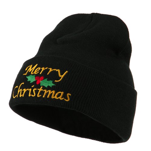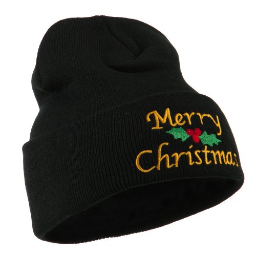 -. Title : Merry Christmas Embroidered Long Beanie - Black