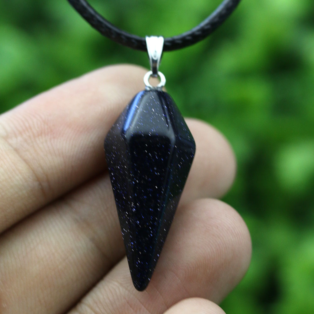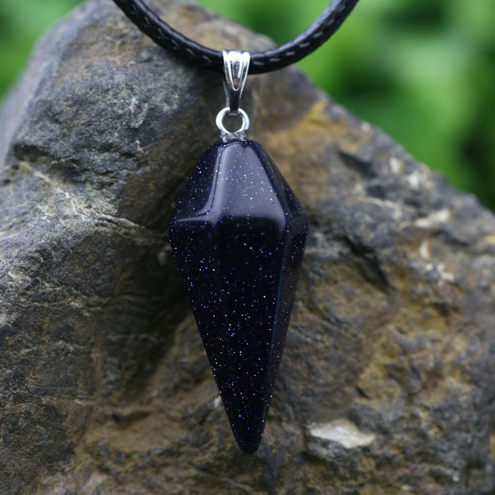 ladies Natural Stone Necklace Designs Blue Sandstone and Howlite Pendant with Leather Chain Bijoux Fashion Jewelry