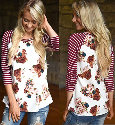 -. Binding : Apparel -. Brand : Locry -. Color : Wine Red -. Department : womens -. Feature : Collar: O-Neck; Sleeve: 3/4 Sleeve; Pattern: Patchwork; Fit Style: Slim / Season: SP.R.Ing, Summer, Autumn; Opportunity: Casual, Sport / Garment Care: Hand-wash and Machine washable, Dry Clean / 4 sizes avaiable: S= US: XS(4); M= US: S(6); L= US: M(8-10); XL=US:L(12) / How to choose proper size? Hint 1: Chest Size is the most important reference. Hint 2: Choose larger size if your measurement sizes are same or a bit bigger than the size chart. -. ProductGroup : Apparel -. ProductTypeName : SHIRT -. Title : Locry Women 3/4 Raglan Sleeve Striped Floral P.R.Int Patchwork Tee Shirt