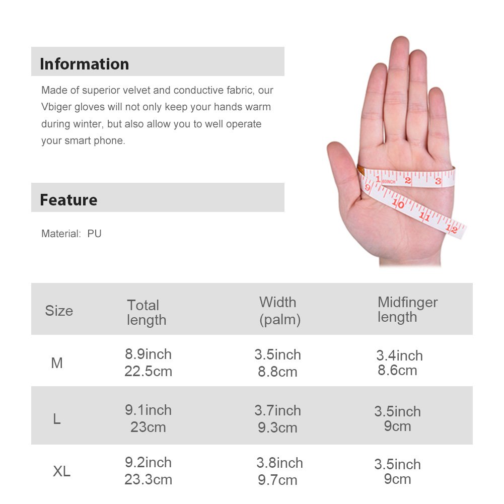 Made of excellent PU, our Vbiger gloves not only keep your hands warm during winter, but also make it possible to operate smartphones well.