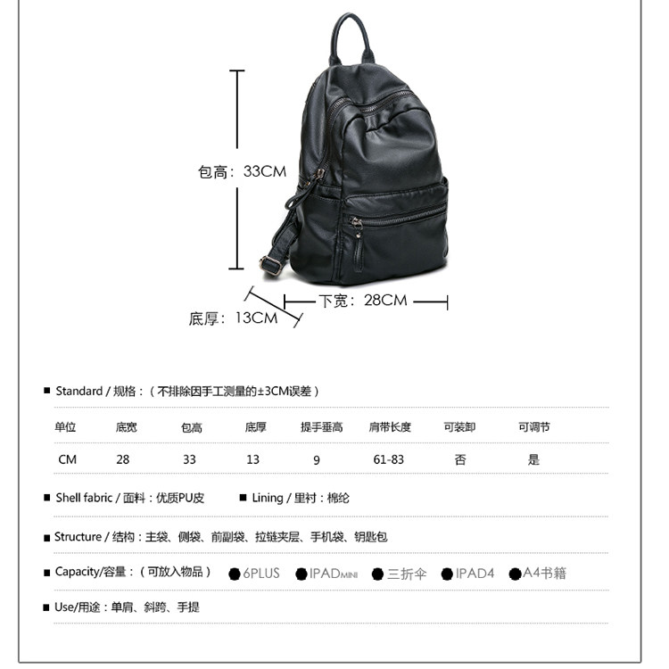 Internal structure: zipper pocket phone bag document bag