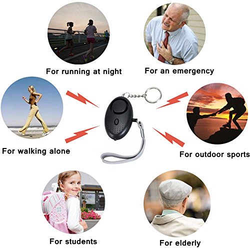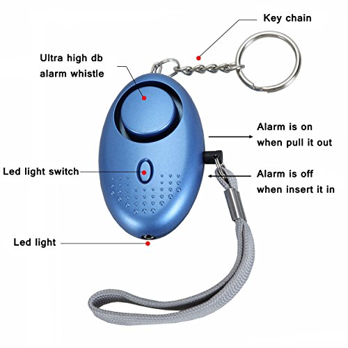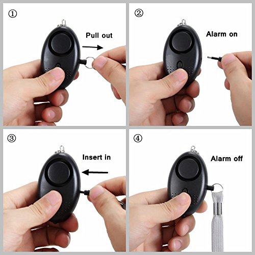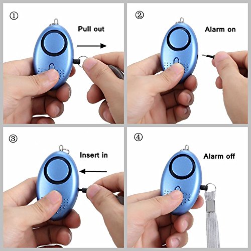 -. Feature : Loud Sound: 130dB personal alarm is loud enough to scare off an attacker or draw attention for help when someone is in emergency. / Easy to use: Just pull out the pin from the device to turn on alarm. Push the pin back in to stop the sound. / Multi-function: The emergency personal alarms also includes a mini LED, activated by pressing the separate button, can be used as a flashlight for immediate illumination. / Portable: Simple and small design make it easy to carry, can be attached on handbag, backpack or keys. / Suitable for women, students, kids, elderly and night workers. It is a security necessary supply.