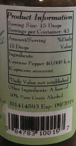 Product DescriptionBest Botanicals Cayenne Pepper Extract 1 oz. 50% pure grain alcohol base.0
