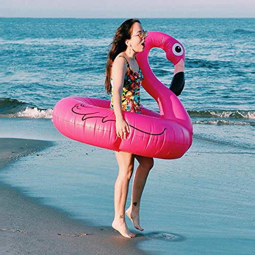 Product Description This is the incredibly popular Inflatable Ride-On Flamingo. It is a perfect addition to the pool, lake, or river. It is made of heavy-duty vinyl that will assure durability during all of your water fun! Make this ride-able giant flamingo the next great addition to your summer fun in the sun! 0