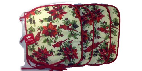 -. Feature : 13¾x15" Christmas House® poinsettia chair pads. / fit most standard sized chairs / red fabric ties on the back to easily secure them to the chair back / Perfect for kitchens, dining rooms, offices, restaurants, and more. / set of 4