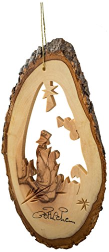 Earthwood Olive Wood Nativity Ornament Bark Slice