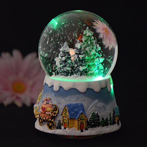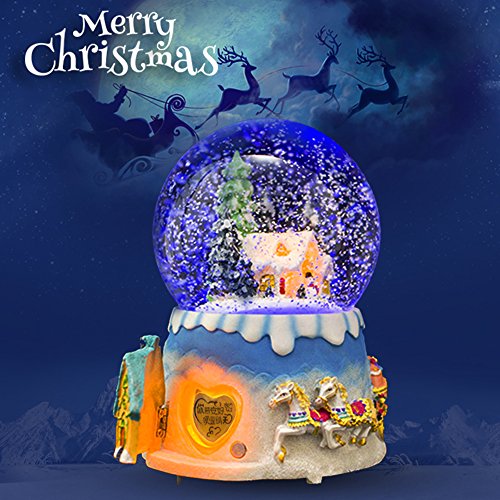 Title : LIWUYOU Clockwork Type Colorful Luminous Rotation Christmas Crystal Ball Music Box With Music of Castle in the Sky, Snowflakes and Janpanese Sankyo Movement, Horse