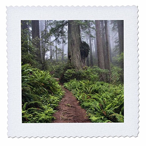 3dRose qs_88620_4 Path, Giant redwood trees, Redwood NP, California - US05 RKL0040 - Raymond Klass - Quilt Square, 12 by 12-Inch