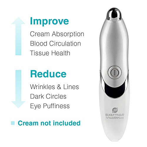 - WHAT'S INSIDE: This great value package comes with a fantastic B. Kettner VisoRelax Eye Rejuvenator in silver and white with a super modern design. The eye massager provides Ionic Therapy, which smooths wrinkles and fine lines, and Heat Treatment, boosting cream absorption and firming up your tissue. The Eye Rejuvenator comes with a charger, so you can take it with you on the go.