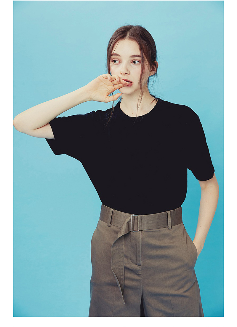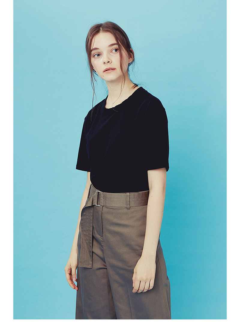 신축성이 좋은 코튼 1X1 원단으로 제작되어 편안하고 슬림한 핏을 연출합니다.
