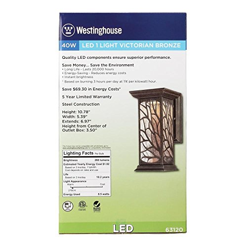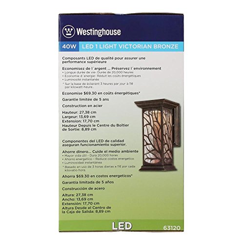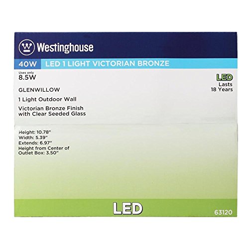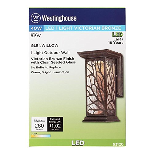 Westinghouse 6312000 Glenwillow One-Light LED Outdoor Wall Lantern with Clear Seeded Glass, Victorian Bronze Finish
