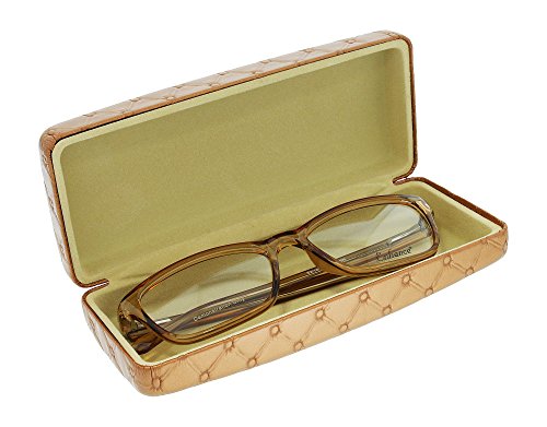 Binding : Apparel Product Description Indulge yourself with these elegant faux leather hard clamshell style cases available in four fashionable colors; black, copper, gold dust, and pearl. These chic cases have a quilted design embossed onto the faux leather and all have a slight pearly finish either giving the black eyeglass case an extra bit of luminescence or a touch of metallic luster on the other three color choices, making them all look rich. These cases measure 6.13 inches long 2.5 inches high and 1.63 inches deep. These sophisticated looking cases are amply lined with plush styrene to help keep your glasses protected as well as a strong metal hinge hinge to keep your case closed tight. These opalescent cases will be the perfect accessory for any pair of medium to large frames. 0