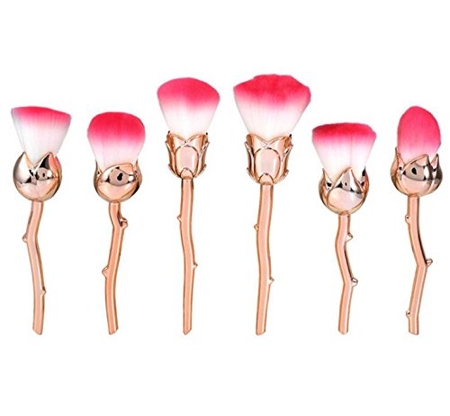 - ❤A magic and professioanl cosmetic brushes set: Tongsen 6pcs Golden Rose Flower Nylon Hair Makeup Brush Set, For foundation, loose powder, blush, shade.
