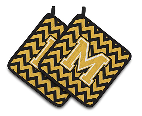 Caroline's Treasures CJ1053-MPTHD Letter M Chevron Pot Holders (1 Pair), 7.5" x 7.5", Black/Gold