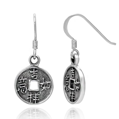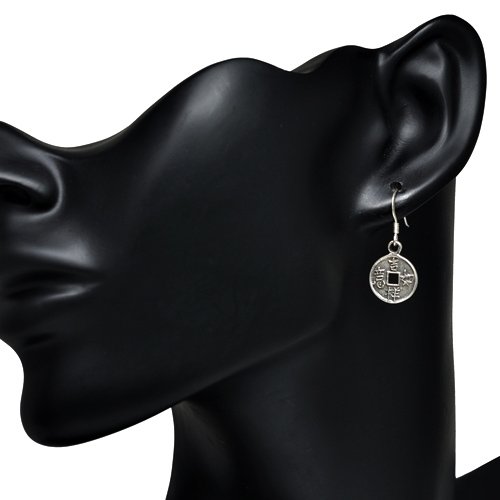 These beautiful sterling silver earrings would be a wonderful addition to any wardrobe. The included black velvet pouch makes it the perfect gift for someone special. Made from high quality .925 sterling silver. The Chinese coins used in the practice of feng shui (pronounced "fung shway") are considered to be the most powerful manifesting tools for attracting wealth, prosperity, and endless fortune, especially those from the extremely auspicious Qing (pronunciation similar to the English word "chin") or Ch'ing Dynasty.Round in external shape, the coins have a square hole in the center. The round shape symbolizes heaven, and the internal square represents earth. When used by humans, the coins represent the engagement luck of "Heaven-Earth-Mankind."