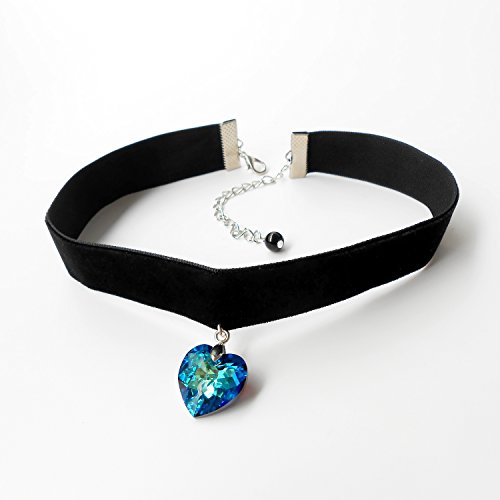 RareLove Classic Black Velvet 20mm Choker Necklace with Blue Heart Austrian Crystal Charm Pendant a special design inspired from our around living would be a great addition to your finely dress or fashion jewelry collection. Cute but true, simple but exquisite, dressed with Choker Necklace with Blue Heart Austrian Crystal Charm would makes a girl more attractive and confidence in work or at party as well as any other occasion. Besides, it will be a special gift for people who loves you and you loved on her birthday as well as other special occasion.Feature