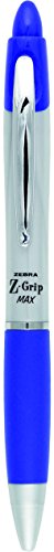 Zebra Z-Grip MAX Retractable Ballpoint Pen, Medium, 1.0 mm, Silver Barrel, Blue Ink, 12-Count (22420)