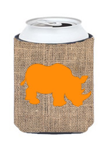 Rhinoceros Burlap and Orange Can or Bottle Beverage Insulator Hugger BB1006