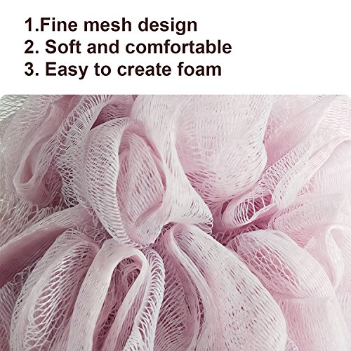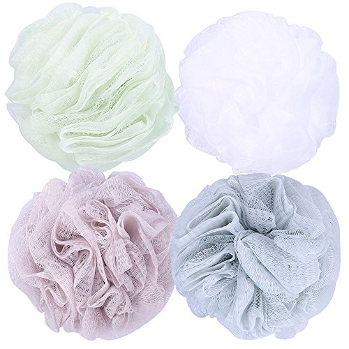 JMJ Bathing Series Loofah Bath Sponge Mesh Shower Wash Ball Lufa Bath Soap Pouf Bathroom Accessories Body Sponges for Shower Pack of 4 (60g/pcs) …