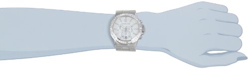 46 clear stones surrounding dial add some shine to the silver stainless steel case and band.