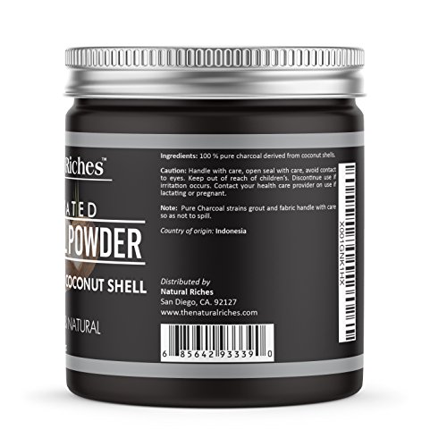 -. Feature : Natural Riches Activated Charcoal Powder; made from 100% pure coconut shells; no additives; not tested on animals; vegan; imported from Indonesia / Great for DIY recipes such as facial masks, facial scrubs, knee lightening, underarm lightening, homemade eyeliner, homemade mascara, and teeth whitening. / Packaged IN USA, adhering to strict standard of quality. / To create activate charcoal, regular charcoal is heated with gas to make it expand, thus making it porous and more absorbent. Activated charcoal chemically binds other substances to its surface and compared to regular charcoal, can absorb thousands of times its own weight Purchase with complete peace of mind, we are confident we have provided the absolute best activated charcoal powder in the market. If you are not completely satisfied with. / SAFETY WARNING: Rub a very small amount of your DIY skin recipe on the inside of your elbow area to test for any allergic reaction before use. Avoid contact with eyes, keep out of the reach of children. If pregnant, consult with your health care provider before use.