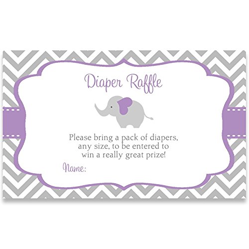 Elephant Baby Shower, Diaper Raffle Tickets, Chevron, Stripes, Purple, girls, It's A Girl, Gray, Sprinkle, Little Peanut, Set of 25 Printed Diaper Raffle Tickets, Raffel, Chevron Elephant