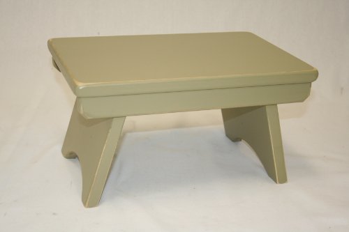 -. Feature : This step stool is made of solid wood, and handcrafted by an Amish family. / Size: 14"W x 9"D x 7-3/4"H; Top: 14"W x 9"D x 3/4"Thickness; / Finishing: Antique Oliver-green / Fully assembled