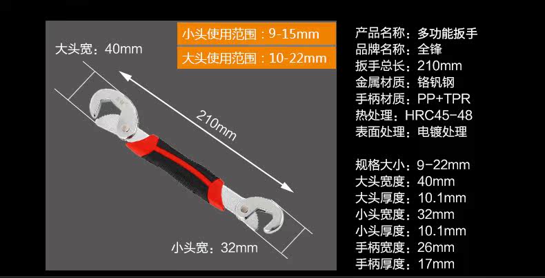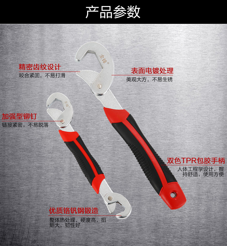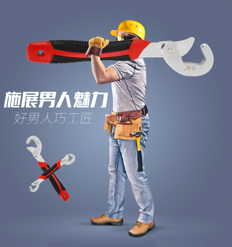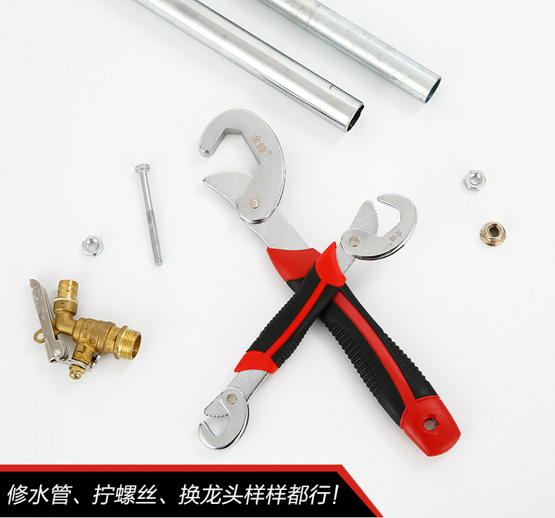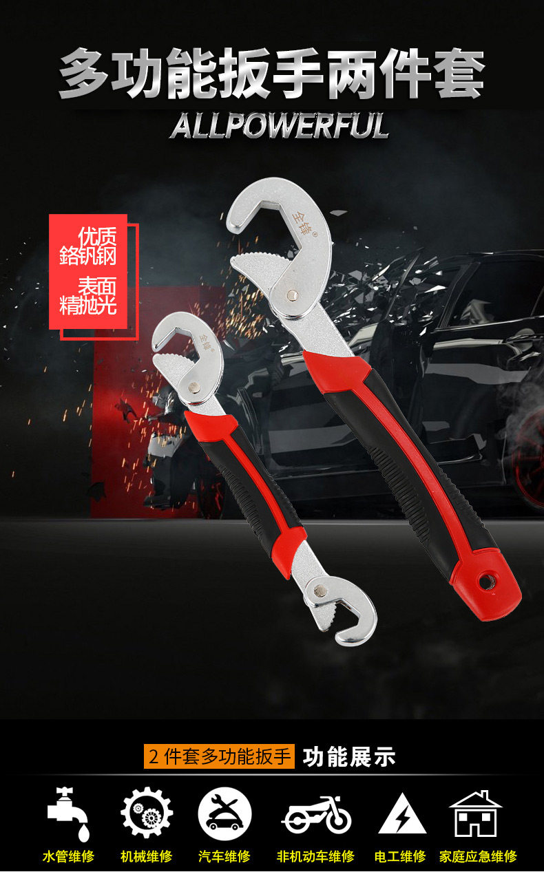 多功能扳手两用勾型快搬万用扳手活动维修工具大口板子套装水管钳