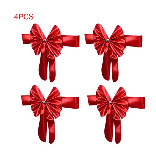 -. Title : Justoshop 4 pcs Strap Wide 6cm Bow Diameter 25cm Wedding Hotel Chair Cover Bowknot Decoration Free Tie Elastic Chair Back Bow