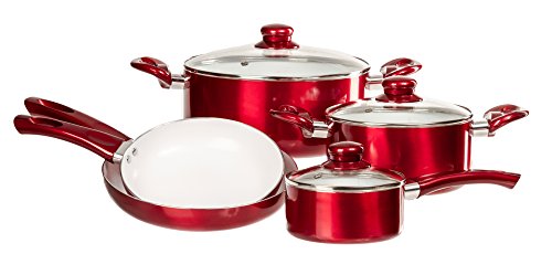 -. Title : 12 Pc Ceramic Coated Cookware Set - Healthy Set of Pots and Pans w/ Glass Lids & Cooking Utensils (Red) by Imperial Home