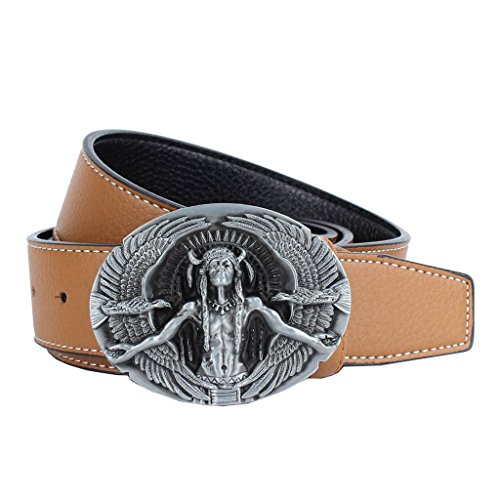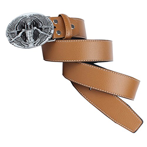 Description: - A piece adjustable belt with oval indian chief eagle buckle - Western cowboy,men, favor waistband accessories - Adjustable belt,you can cut it according to your waist,it's comfortable and convenient - Material:zinc alloy,pu leather - Belt length: approx. 120cm/47.2inch, Belt width: approx. 3.8cm/1.49inch Buckles size: appro. 8.5x6cm/3.35 x 2.36inch Package Includes: 1piece belt