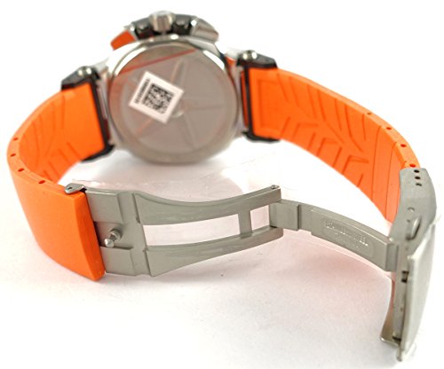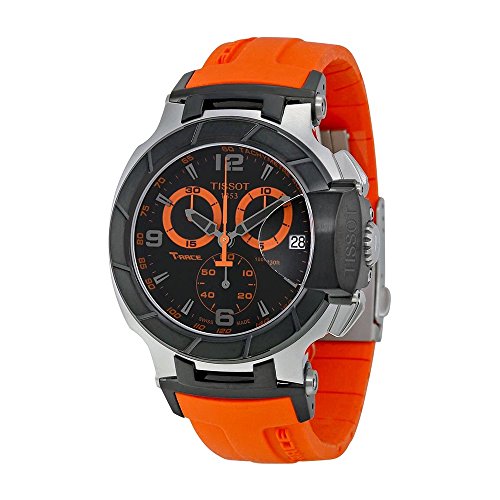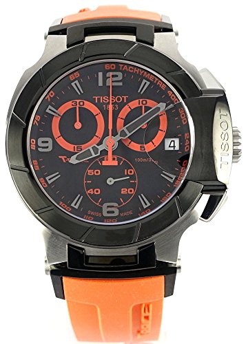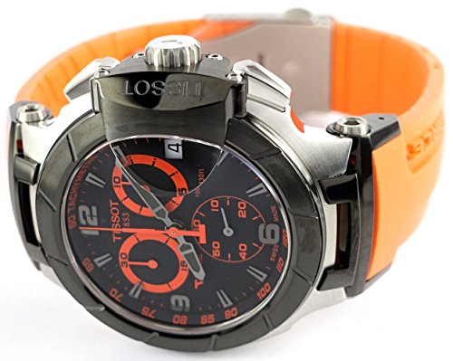 Studio : Tissot Publisher : Tissot Binding : Watch Product Description Tissot, the 'Innovators by Tradition', has been pioneering craftsmanship and innovation since its foundation in 1853. The company has had its home in the Swiss watch making town of Le Loche in the Jura mountains but now has its presence in over 150 countries. The Tissot innovation leadership is enabled by the development of high-tech products, special materials, and advanced functionality. The Tissot company has been involved with high profile sports events since 1974 when they sponsored a racing car in the 24 Hours of Le Mans, France. Since then, Tissot's timepieces have been chosen as official timekeepers for world championships in cycling, motorcycling, fencing and ice hockey. Also Tissot is currently the official watch and timekeeper of NASCAR. Stainless steel case, Black dial, Magnified date at the 3 o'clock position, Small seconds at the 6 o’clock position, minutes for the chronograph at the 10 o’clock and hours at the 2 o’clock position, Tachymeter sale on the outer flange, Orange rubber strap, Push-button deployment clasp, Anti-reflective sapphire crystal, Push/pull crown, Swiss quartz movement, Water resistance to 100 meters/330 feet.
