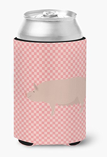 Caroline's Treasures BB7938CC English Large White Pig Pink Check Decorative, Can Hugger, Multicolor