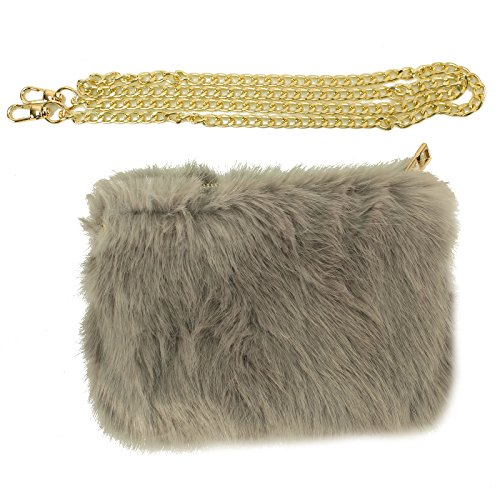 Winter CC Faux Fur Furry Fuzzy Fall Crossbody Shoulder Bag Baguette Removable Strap Clutch Handbag Purse Zipper closure Just in CC furry fuzzy faux fur handbag that will match your beanies hats as well. What a great versatile cross body shoulder handbag. This will go with everything, casual or a night out on the town. Removable gold tone long metal strap, wear as a necklace, fashion belt, get creative. Remove chain and turns clutch evening cocktail purse. 1 medium size interior middle compartment for your cash money and credit cards. Will fit 2 large smartphones and lip gloss, lipstick, compact mirror and and your house keys. Also great as a cosmetic bag. Keep all valuable in here and switch out into bigger size bags. Makes a great gift.Great for multiple seasons. Will compliment any outfit. Makes a great gift for anyone. Animal friendly, no animals harmed 0 |