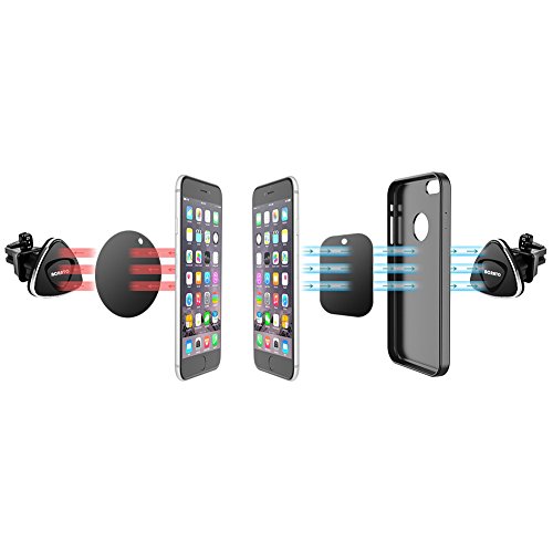 Two Magnetic Pieces for Your Phone---This car mount comes with two different shape mounts; One can be stuck on the phone contacting the holder; Another one can be placed between your phone case and your phone to contact the mount;