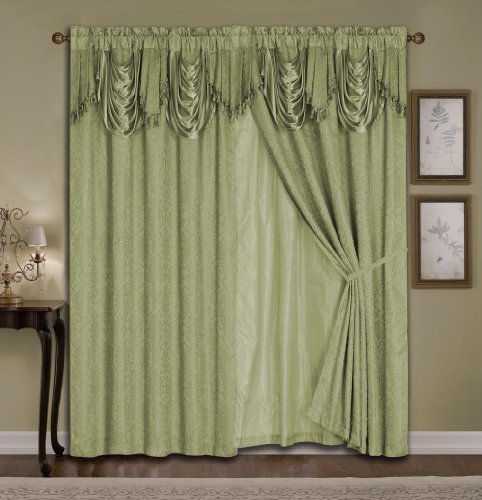 Luxury Jacquard Curtain Set. 4 piece set. curtains with tie backs and valance