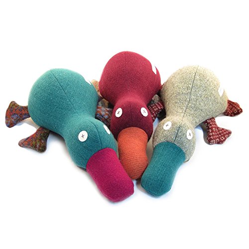 Cate and Levi's Handmade Platypus Stuffed Animal is not only the perfect gift for a boy or girl but it will also add a touch of adventure to any room. Platypuss are only seen in the wild or in zoos now you don't have to travel far to see one; you can simply buy one of our Handmade Platypus Stuffed Animal! At Cate and Levi, our artisans use reclaimed wool to craft this very attractive handcrafted Platypus Stuffed Animal. Our Stuffed Animals are 100% environment friendly and safe for children to play with. No two Cate and Levi Premium Reclaimed Wool Stuffed Animals will ever be the same. Each one is made from reclaimed wool whose colors and textures are individually selected. Not only is this process environmentally responsible, but it ensures that each animal is truly a one of a kind creation never to be duplicated. So, let us surprise you with one that is completely unique. Materials: Premium Soft Reclaimed Wool. Size: Approximately 20 inch height (50.8 cm). Hand Wash Or Machine Wash Warm, Dry Low. Proudly Handmade in Toronto, Canada by a family-owned business - Joshua Title, OwnerFeature