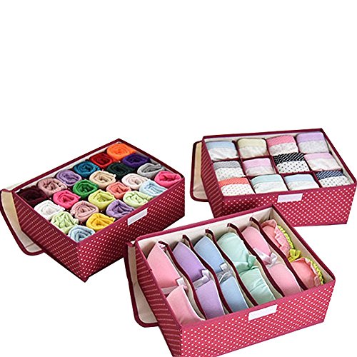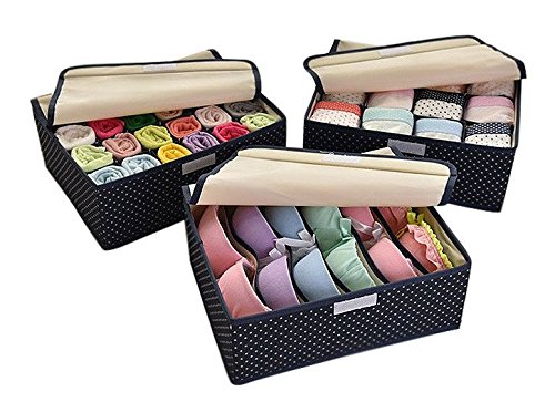 -. Feature : Foldable design for easy storage and saving storage space. / Perfect to store any underwear, socks, gloves, handkerchiefs and towels. / Specifically design prevents underwear from tangling and dusts. / This 3-piece drawer organizer set includes 6, 12, and 20 compartment design in one set. It is fit for your different storage need. / Newly designed with a cover, provide better protection for your bras, underwear and socks etc