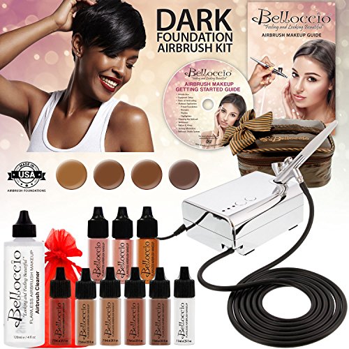 -. Binding : Misc. -. Brand : Belloccio -. EAN : 0844925038430 -. Feature : Belloccio® Cosmetic Makeup Airbrush & Compressor System with 1 Year Free Replacement Warranty / Belloccio® DARK Shade Airbrush Makeup Foundation Set with 4 colors to assure a Perfect Match. / Anti-Aging Moisturizing P.R.Imer (1/4 oz) With Radiant Bronzer, Blush & Highlighter bottles. / Free: Belloccio's® Limited Edition Cosmetic Carry Bag & bottle of Blush / User Guide Manual - Detailed steps for getting the best results when using the Belloccio System. -. Label : Belloccio -. Manufacturer : Belloccio -. ManufacturerPartsWarrantyDescription : Parts -. Model : BEL KIT-DARK4 -. MPN : KIT-DARK4 -. PackageQuantity : 1 -. PartNumber : KIT-DARK4 -. ProductGroup : Beauty -. ProductTypeName : BEAUTY -. Publisher : Belloccio -. SKU : BEL KIT-DARK -. Studio : Belloccio -. Title : Belloccio's® DARK Complexion Professional Airbrush Cosmetic Makeup System. Belloccio® Is the Superior Brand of Airbrush Makeup. It's Made in the USA From All FDA Approved Ingredients and Is Paraben & Oil Free. 1 Year Warrantee on All Equipment & FREE Bonus Items. Love Our Makeup or Return It for a Full Refund. -. UPC : 844925006231