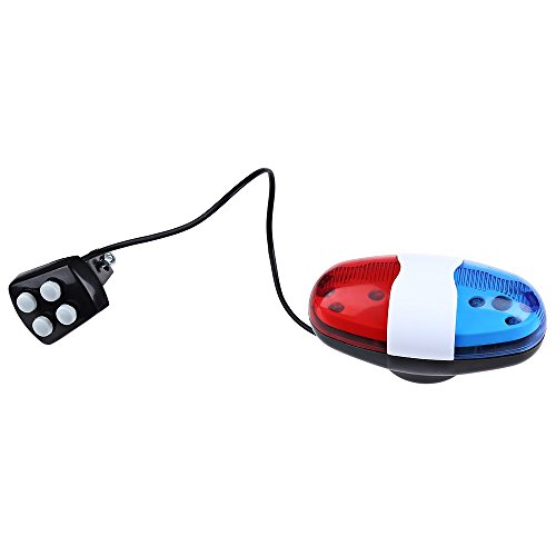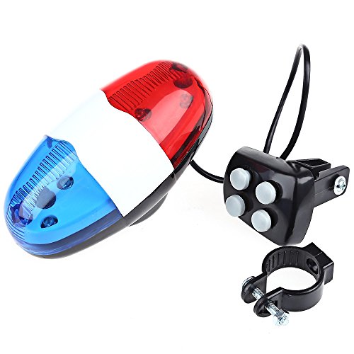 -. Feature : - Keep you from danger by warning or noticing others / - 4 loud bicycle horns for safe riding / - 6 red blue LED lights with bike sirens / - A switch controls the flash modes giving the effect of flicker
