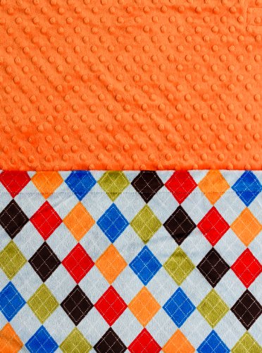 Baby Laundry 92332 Soft Minky Argyle Orange Baby Blanket 36"x30" with Pacifier Clip