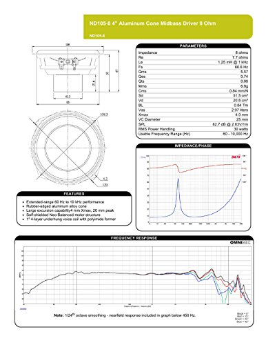 Dayton Audio ND105-8 4" Aluminum Cone Midbass Driver 8 Ohm