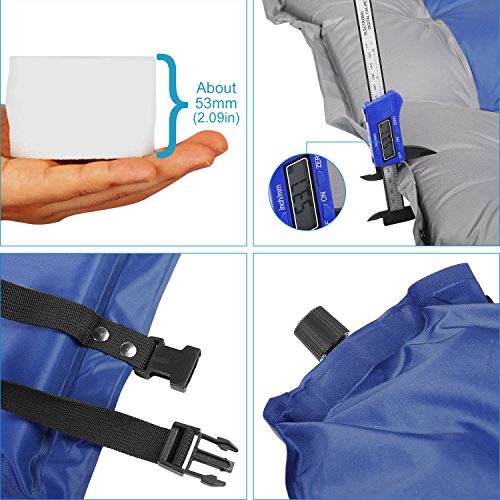 Waterproof and Lightweight: Materials of our inflatable lounger are lightweight and durable 5CM thick high resilience sponge, 75D pongee fabric, 21 hole hollow design, ABS engineering clinker gas nozzle composite.