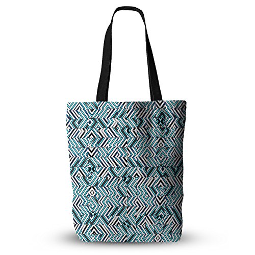 KESS InHouse Dawid Roc "Maze Geometric Abstract 2" Teal Pattern Everything Tote Bag, 18" x 18", Multicolor
