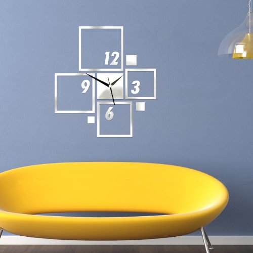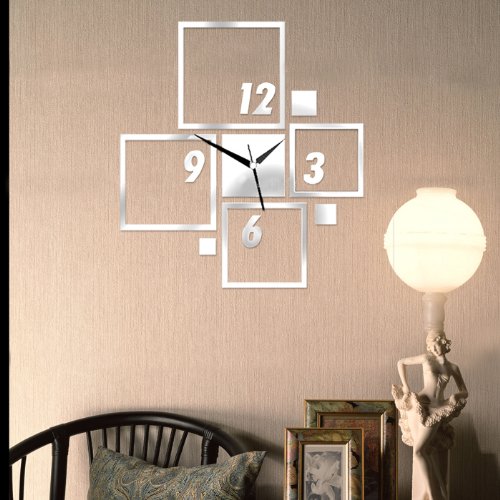 - Title : Toprate(TM) Square Rectangle and Figure Number Wall Clock Mirror Wall Clock Modern Stylish Fashion Removable DIY Acrylic 3D Mirror Wall Decal Wall Sticker Decoration (Silver)