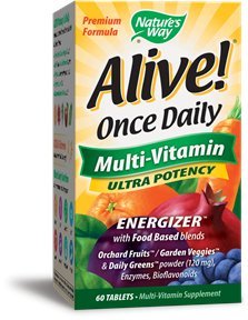 -. Binding : Health and Beauty -. Brand : Nature's Way -. Label : NATURE'S WAY -. Manufacturer : NATURE'S WAY -. PackageQuantity : 1 -. ProductGroup : Health and Beauty -. ProductTypeName : HEALTH_PERSONAL_CARE -. Publisher : NATURE'S WAY -. Studio : NATURE'S WAY -. Title : Alive Once Daily Multi-Vitamin Ultra Potency