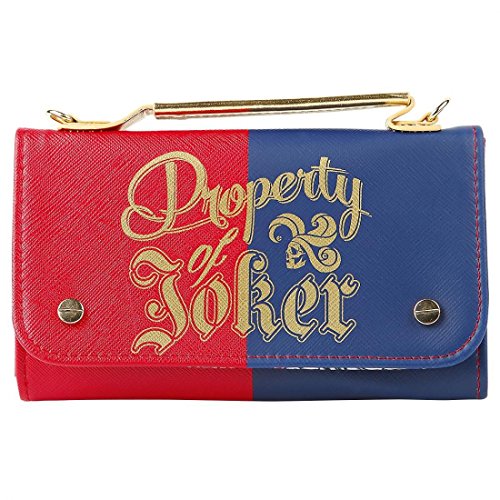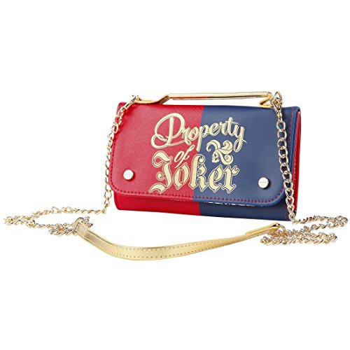 Suicide Squad Harley Quinn Hybrid Bag Hello Puddin' Faux Leather Hybrid Bag with Fold Out Wallet Fully Lined With Diamond Pattern 48" Chain shoulder strap 7.5" x 4.5" Folded 90% PU 10% Polyester
